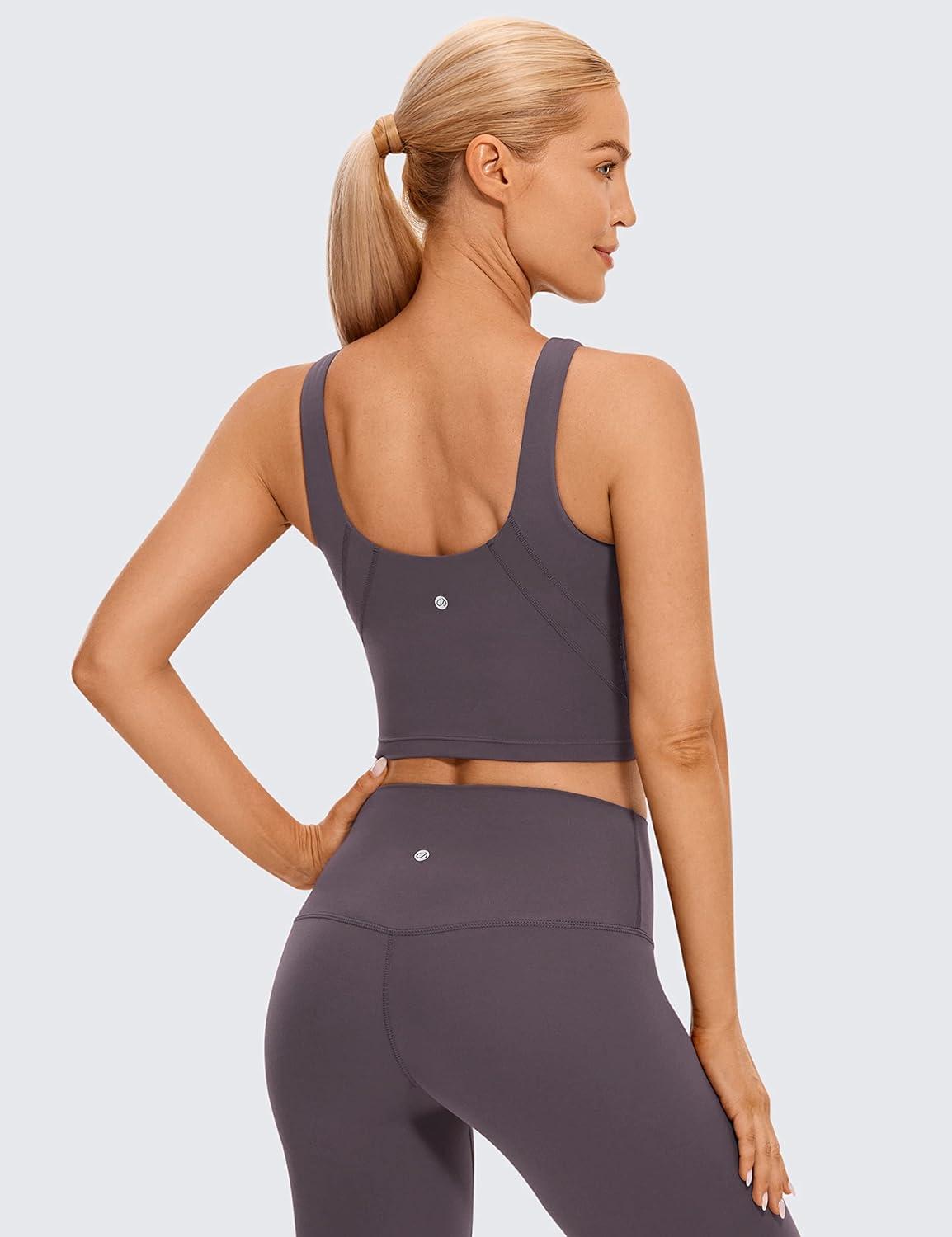 CRZ YOGA Womens U Back Sports Bras Padded High Neck Crop Workout Tank Tops(Tornado Grey)