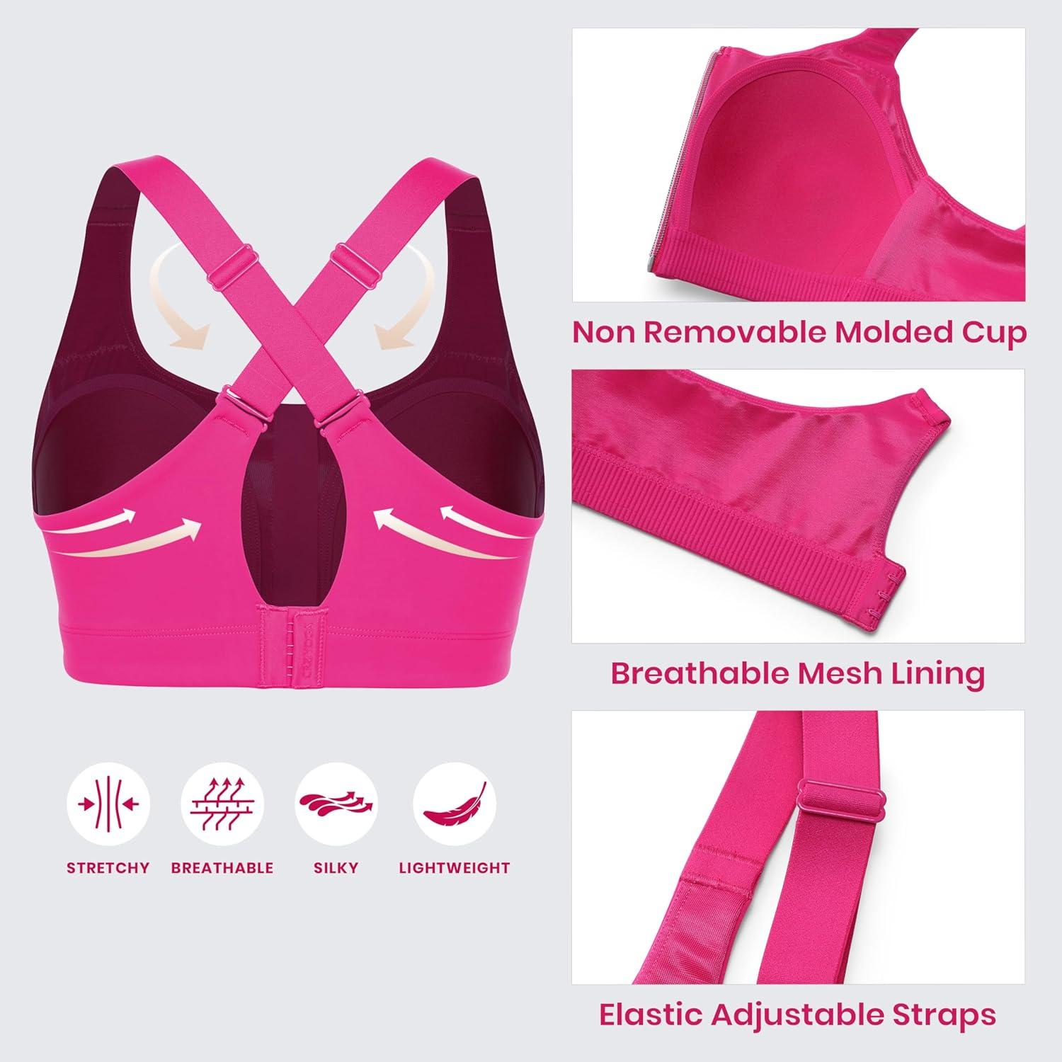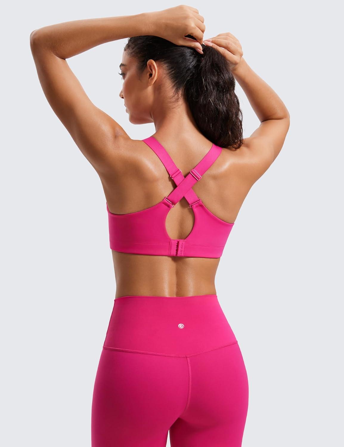 CRZ YOGA Womens Zip Front High Impact Sports Bra – Molded Cup Adjustable Convertible Straps Wireless Workout Yoga Crop Top(Granita Pink)