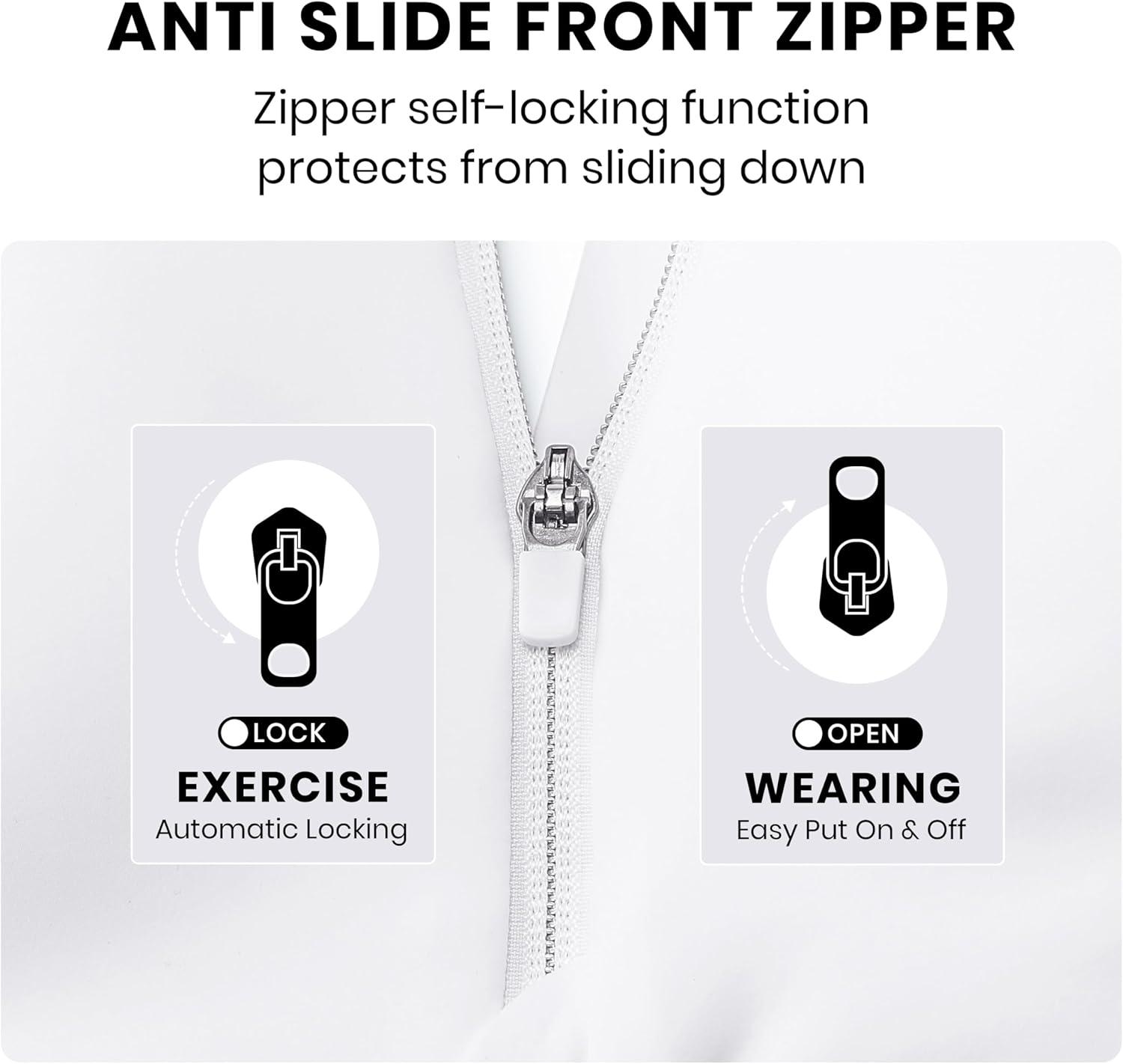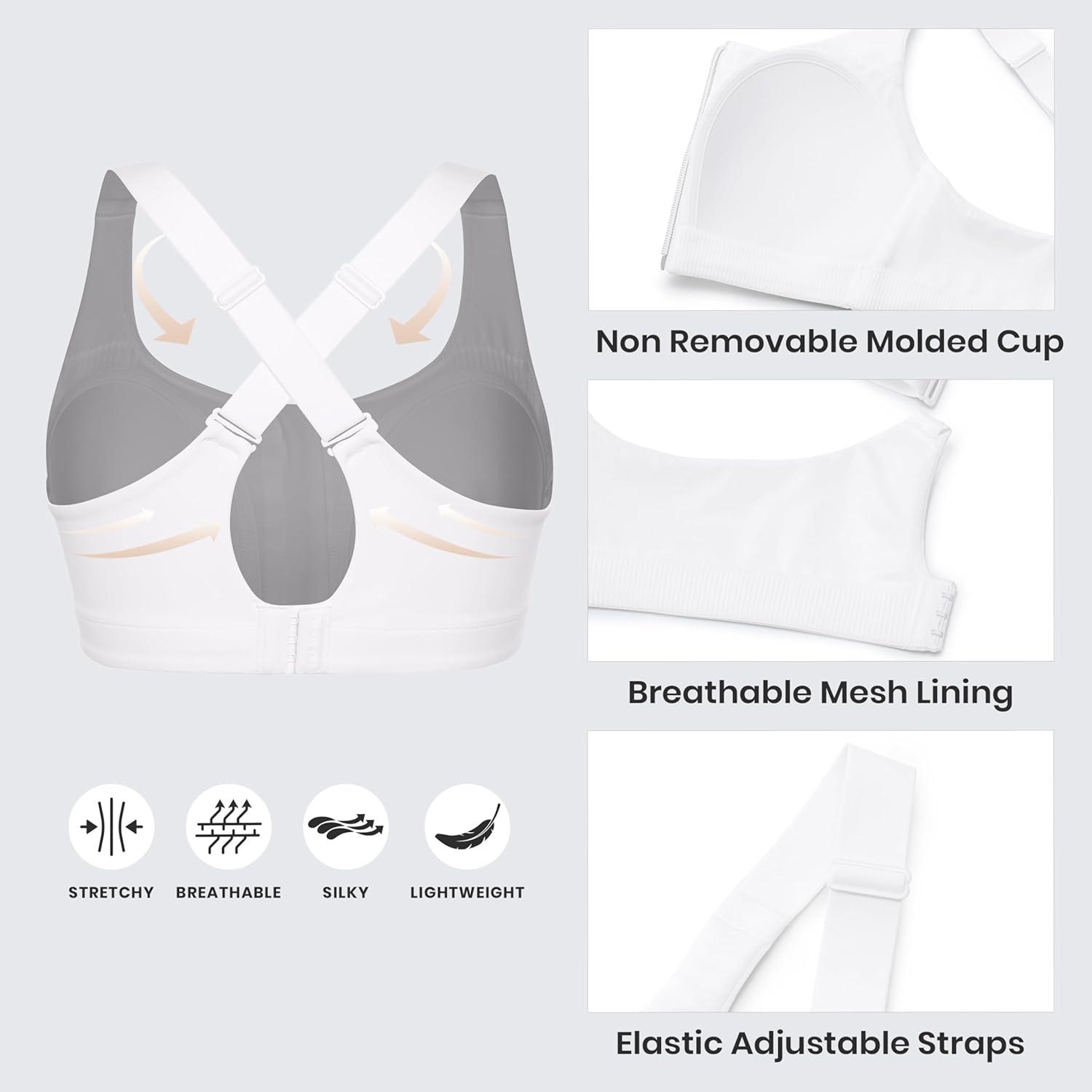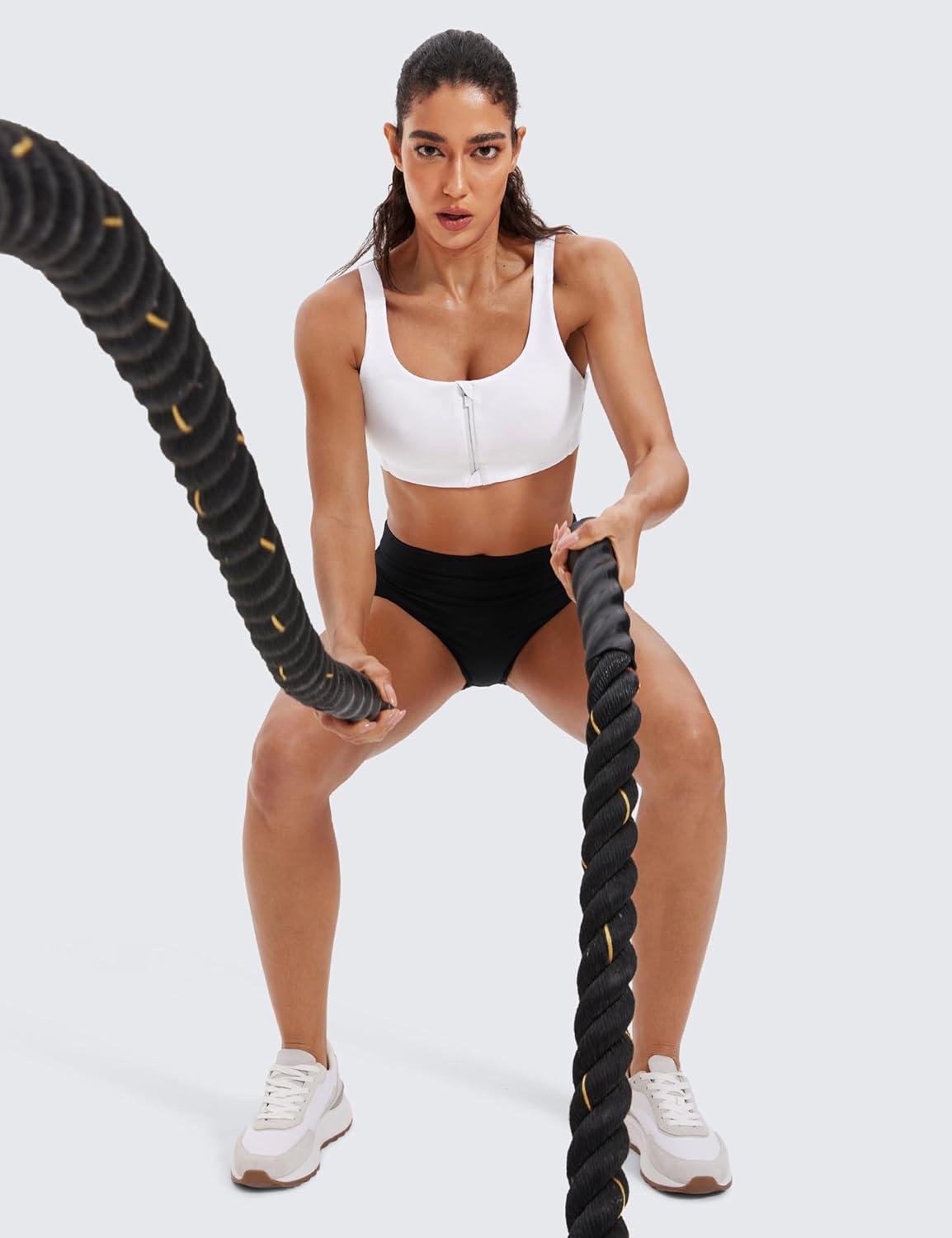 CRZ YOGA Womens Zip Front High Impact Sports Bra – Molded Cup Adjustable Convertible Straps Wireless Workout Yoga Crop Top(White)